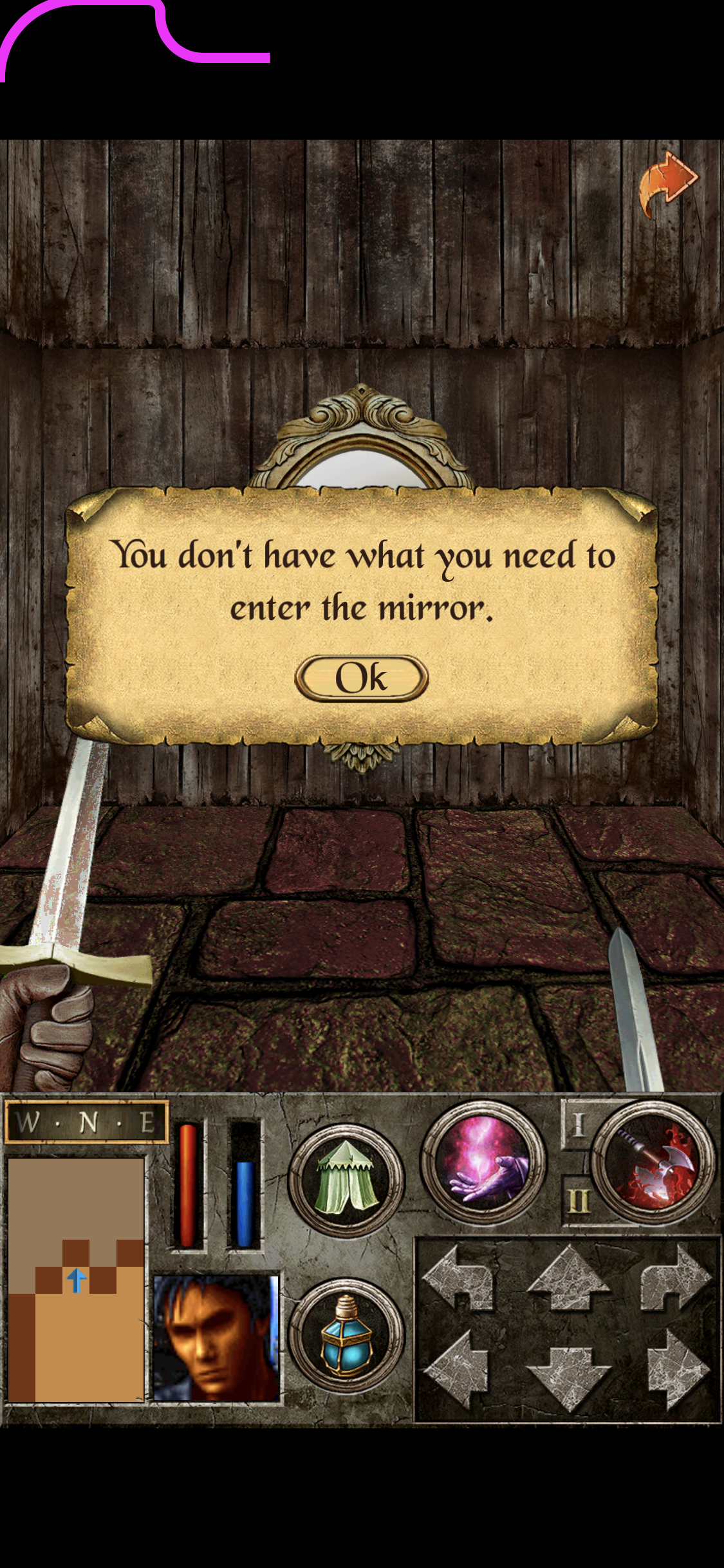 In the mirror room there's a mirror in the north west alcove which doesn't let you enter - it comes up with the message that I don't have what's needed to get in.