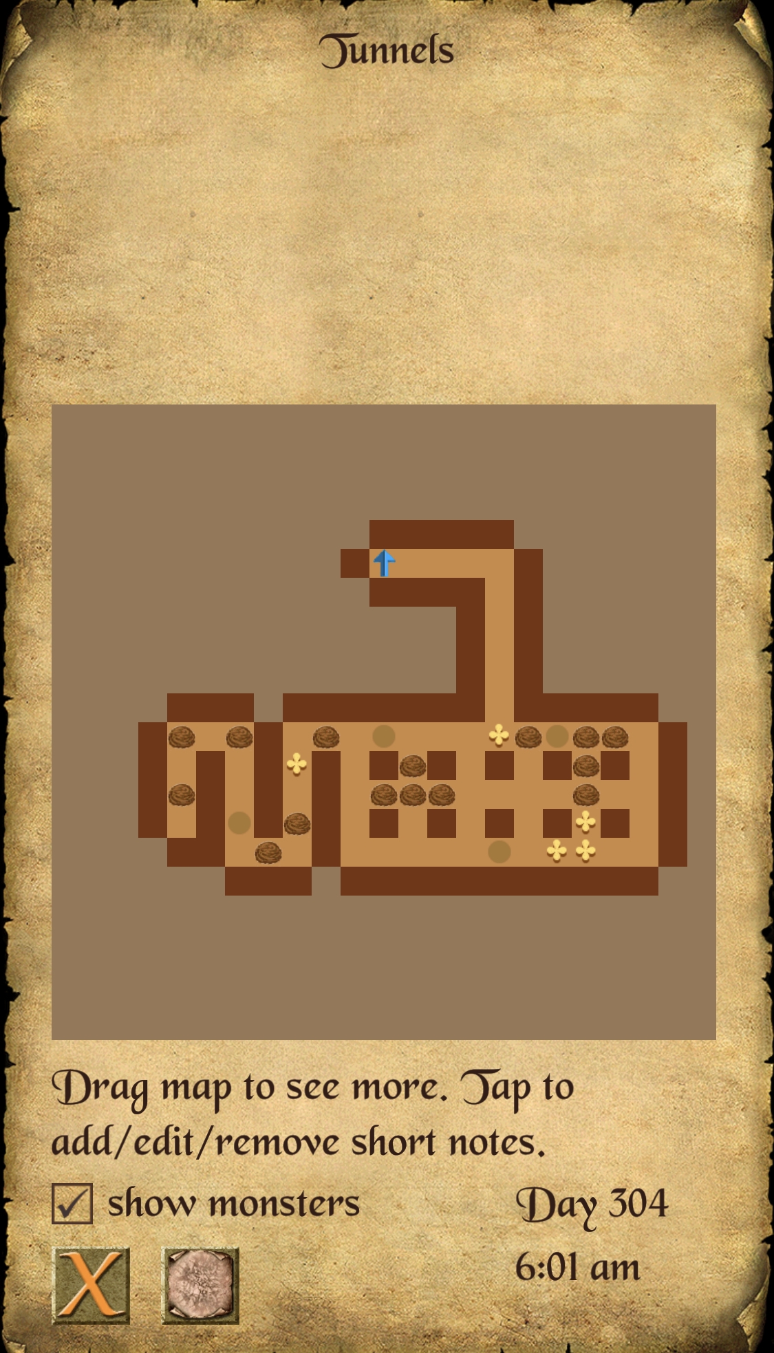 Eliminate the creatures in this tunnel area. Walk to the east part of this area and tap the crack on the section of wall shown in the screenshot below.