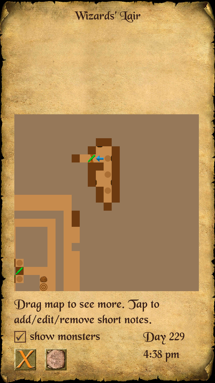 For the door in Wizard's Lair you need the Key to Phredd's Emporium. It's there behind a wall. Investigate the paintings. : )
